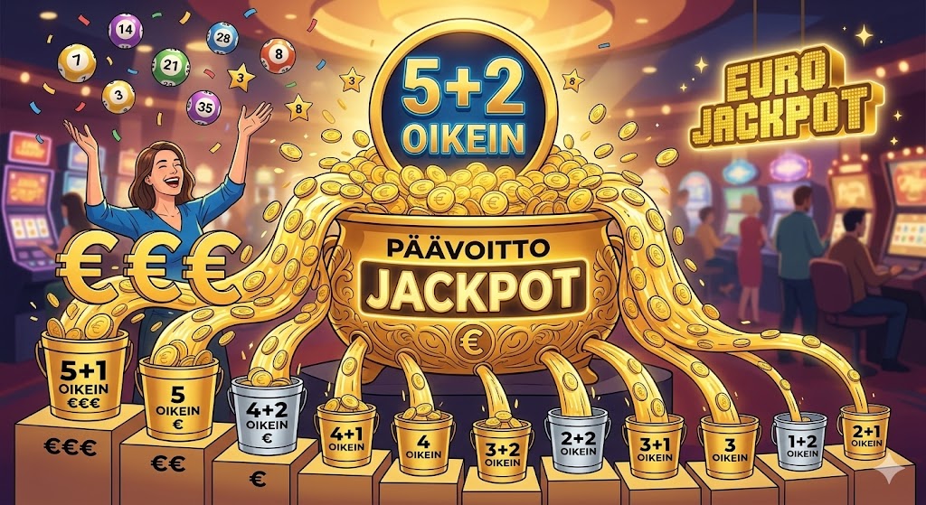 Yksi Eurojackpotin parhaista puolista Suomessa on voittojen verovapaus. Veikkaus maksaa arpajaisveron valtiolle pelaajien puolesta, joten saat kaikki voitot tilillesi täysimääräisenä. Jos voitat 120 miljoonaa euroa, saat tasan 120 miljoonaa euroa. Tämä on merkittävä ero moniin muihin maihin, joissa lottovoitoista saatetaan periä jopa 20–30 % veroja.